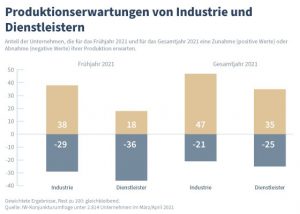 40 Prozent der befragten Firmen planen im Vergleich zum Vorjahr mehr zu produzieren, nur 24 Prozent weniger. Knapp 30 Prozent wollen Personal einstellen, ein Drittel will mehr investieren. „Im Hier und Jetzt kämpfen die Unternehmen weiterhin mit den vielfältigen Beschränkungen“, sagt IW-Konjunkturexperte Michael Grömling. „Allerdings sorgen die fortschreitenden Impfungen dafür, dass die Unternehmen überwiegend zuversichtlich auf die zweite Jahreshälfte schauen.“