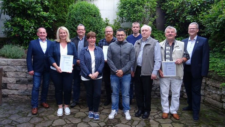 Umso mehr freute sich Geschäftsführer Christof Blecher aufgrund gesunkener Inzidenz-Werte und deren Lockerungen auf die Gelegenheit, den Jubilaren zusammen noch einmal Danke zu sagen und das jahrlange Engagement im Unternehmen zu würdigen. Dabei gehört Christof Blecher selbst zu den Jubilaren. Er kann auf über 30 Jahre im Unternehmen zurückblicken, davon seit 25 Jahren als Geschäftsführer. Ebenfalls 30 Jahre Betriebszugehörigkeit weist Uwe Hiemann auf, der nach dem Mauerfall aus seiner Heimat in Sachsen neue berufliche Perspektiven suchte und im Jahre 1990 seine Tätigkeit bei der Otto Blecher GmbH aufnahm.