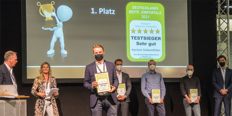 Karriere Südwestfalen hat den letztjährigen Titel „Beste Jobbörse Bewerberzufriedenheit“ in der Kategorie Regionalportale mit großem Vorsprung auf die folgenden Plätze verteidigt. Zudem darf sich das Jobportal auch 2021 „Beste Jobbörse Arbeitgeberzufriedenheit“ nennen. Das ist das Ergebnis des jährlichen Jobbörsenvergleichs des Heidelberger Institute for Competitive Recruiting (ICR) und der PROFILO Ratingagentur für das Vergleichsportal jobboersencheck.de. Die Auszeichnungen wurden am Dienstag, den 14. September auf HR-Leitmesse „Zukunft PersonalEurope“ übergeben.