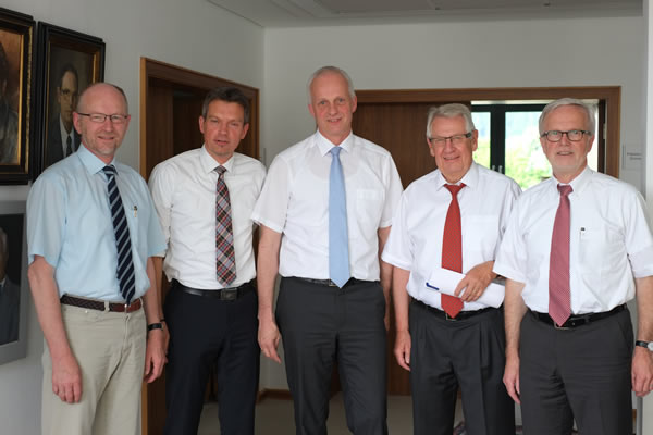 IHK und Bürgermeister betrachten mit großer Sorge die anhaltende finanzielle Auszehrung der regionalen Kommunen. Im Bild (v.li.): Hermann-Josef Droege, Wolfgang Hilleke, Christoph Ewers, IHK-Präsident Klaus Th. Vetter und IHK-Hauptgeschäftsführer Franz J. Mockenhaupt.