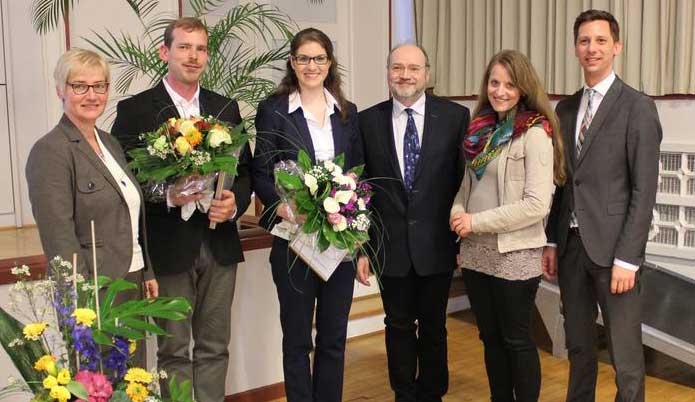 Der Studienpreis des Kreises Siegen-Wittgenstein für das Jahr 2015 wurde jetzt an Helena Kohlberger und Dr. Christian Philip Schmitz verliehen. Die beiden Absolventen der Universität Siegen erhielten die Auszeichnung aus den Händen von Landrat Andreas Müller und Prof. Dr. Hanna Schramm-Klein. Der Preis wurde in diesem Jahr bereits zum 29. Mal verliehen. Er unterstreicht die enge Verbindung der Region mit der Universität Siegen, die auch ein Motor für die Entwicklung und Modernisierung der Region ist, wie der Landrat unterstrich.