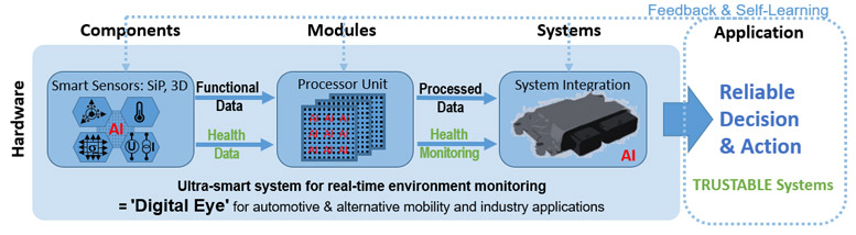 Aktuelle elektronische Systeme, wie sie beispielsweise für autonome Fahrzeuge und die Industrie-Automation erforderlich sind, müssen jederzeit vertrauenswürdig und zuverlässig funktionieren. Speziell im sicherheitsrelevanten Einsatz stellt dies sehr hohe Anforderungen an fortschrittliche Sensorik und intelligente Steuerungen. In diesem Kontext werden im neu gestarteten Projekt „TRUST-E“ mit Siegener Beteiligung innovative Konzepte zur ganzheitlichen Zustandsüberwachung von Sensoren, Modulen und Systemen erforscht.