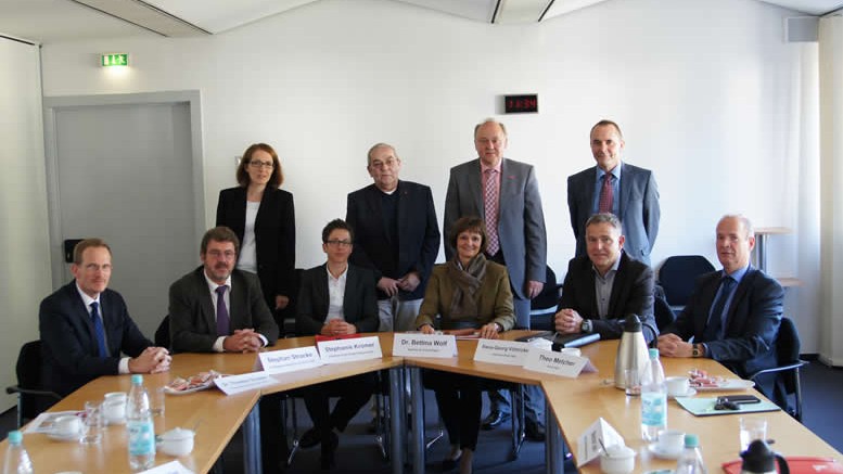 Die Arbeitsmarkt-Akteure der Region Siegen-Wittgenstein und Olpe trafen sich bei Dr. Bettina Wolf (vorne Mitte) in der Arbeitsagentur Siegen zum „Runden Tisch Langzeitarbeitslosigkeit“. Sitzend von links: Dr. Thorsten Doublet, Arbeitgeberverband Siegen-Wittgenstein, Stephan Stracke, Arbeitgeberverband Olpe, Stephanie Krömer, Geschäftsführerin Jobcenter Kreis Siegen-Wittgenstein, Dr. Bettina Wolf, Vorsitzende der Geschäftsführung der Agentur für Arbeit Siegen, Hans-Georg Völmicke, Geschäftsführer Jobcenter Kreis Olpe und Theo Melcher, Kreisdirektor Kreis Olpe. Stehend von link: Melanie Höcker, Arbeitsagentur Siegen, Werner Leis, DGB Siegen-Wittgenstein, Jürgen Haßler, Kreishandwerkerschaft Siegen und Klaus Fenster, IHK.
