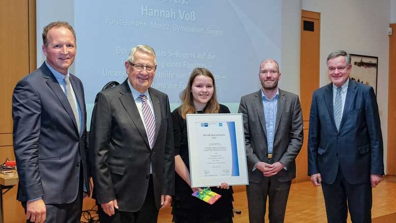 Preisstifter Stefan W. Schauerte brachte es vor mehr als 100 Gästen auf den Punkt: „Es ist mehr als angemessen, dass diese schulischen Facharbeiten größere Aufmerksamkeit erhalten. Sie haben nicht ‚nur‘ sehr gute Noten, sondern auch diesen Preis verdient.“ Insbesondere trifft dies auf die Arbeiten zu, die jetzt durch den VDI-IHK-Oberstufenpreis prämiert wurden. Hannah Voß (Fürst-Johann-Moritz-Gymnasium in Siegen), Lukas Heide (Dietrich-Bonhoeffer-Gymnasium in Neunkirchen) und Christian Jung (Städtisches Gymnasium Kreuztal) sind die drei Gewinner des VDI-IHK-Oberstufenpreises 2017. Platz vier und fünf gingen an Sebastian Braun (Städtisches Gymnasium Kreuztal) und Jonathan Bechtel (Gymnasium Netphen).