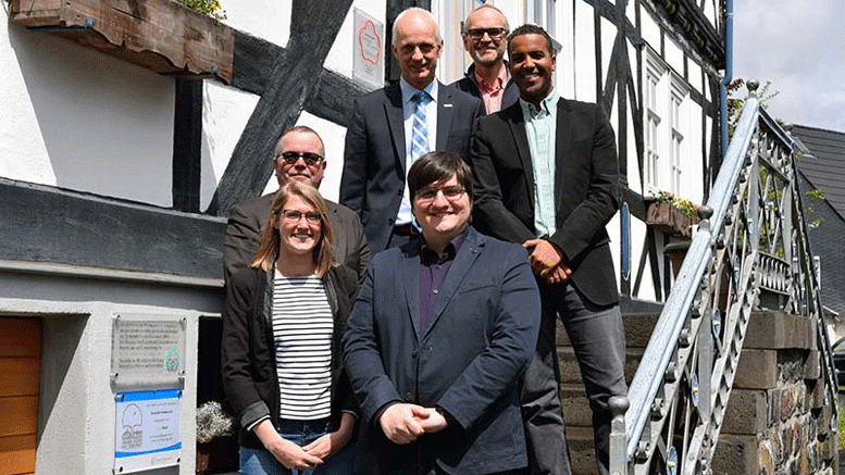 Stellten das Projekt "DataHealth" gemeinsam in der Alten Schule in Burbach vor: Annika Wolf, Regionalmanagerin Regionalverein LEADER-Region 3-Länder-Eck e.V., FoKoS-Mitarbeiter Alexander Keil, FoKoS-Geschäftsführer Dr. Olaf Gaus, Burbachs Bürgermeiser Christoph Ewers, Projektleiter Dr. Dr. med. Charles Adarkwah und Jochen Loos, Geschäftsführer der Lebensgemeinschaft Christlicher Senioren gGmbH Burbach-Lützeln.