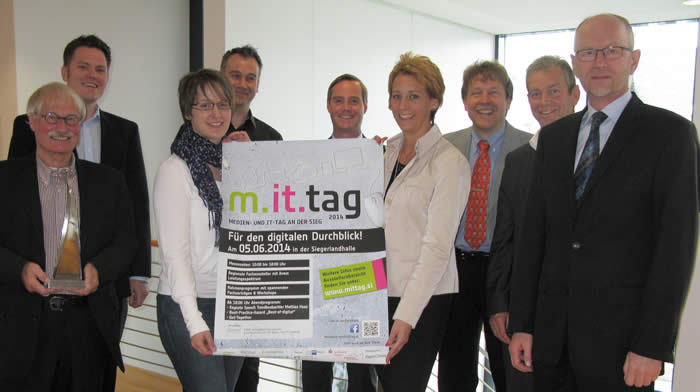 Die Initiatoren sind auch besonders stolz darauf, in diesem Jahr nicht nur die Stadt Siegen in Person von Bürgermeister Steffen Mues als Partner gefunden zu haben, sondern sind auch dankbar, dass die Sparkasse Siegen wie auch die Volksbank Siegerland als Partner von m.it.tag 2014 fungieren. Dass die Aussteller in 2013 recht zufrieden waren, zeigten Äußerungen von Sascha Weinrich, Geschäftsführer detogo: „Der m.it.tag 2013 war für uns als junge Werbeagentur ein voller Erfolg. Der regionale Rahmen hat uns bei den ortsansässigen Firmen bekannter gemacht. Im Rückblick kann ich sagen, dass wir für jeden investierten Euro mehr als 7 Euro zurück bekommen haben. Das wollen wir dieses Jahr toppen!“ und Jan Soose, Geschäftsführer bmd GmbH: „Siegen entwickelt sich zusehends zum Standort für innovative Dienstleistungsunternehmen der IT- und Medienbranche, weshalb ich es gut finde, mit dem m.it.tag eine Fachmesse hierfür zu etablieren. Für uns, als IT-Spezialist für Dokumentenmanagement, ist es die richtige Plattform uns in der Region zu präsentieren und zu vernetzen. Wir wünschen uns, dass die Messe regional und auch überregional mehr Beachtung findet.“