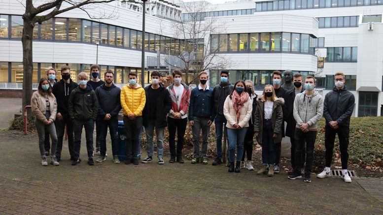 Der erste Teil des Schreibworkshops an der Universität Siegen fand im Plenum statt. Unter Einhaltung der Corona-Richtlinien trafen sich daher die drei MINToren mit den Schülerinnen und Schülern sowie den beiden Programmbetreuern Dr. Bernd Klose und Julia Förster im blauen Hörsaal am Adolf-Reichwein-Campus. Nach der Begrüßung erhielten die MINTees von MINTor Kevin Suta zahlreiche Informationen zum Wissenschaftlichen Schreiben. Er wies nicht nur auf formale Dinge, wie die Schriftgröße oder den Zeilenabstand hin, sondern er informierte die MINTees auch darüber, wie beispielsweise das Inhaltsverzeichnis aufgebaut wird oder dass die Kostenkalkulation des Projektes zwar ein wichtiger Bestandteil der Dokumentation ist, aber in voller Detailtiefe in den Anhang gehört.