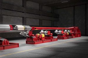 Die erste PST-PE-EX-Maschine, die D&D zurzeit für einen deutschen Hersteller von Großrohren fertigt, wird die Enden von Rohren mit einem Durchmesser zwischen 270 und 1.016 mm bei Wanddicken von bis zu 60 mm richten und expandieren. Auch hier liefert der Zirkular-Laser die Innenkontur des Rohrendes, die für die Ansteuerung des Druckzylinders genutzt wird.