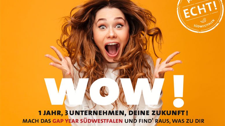 Ab sofort können sich SchulabgängerInnen, HochschulabsolventInnen und junge Menschen mit einer abgeschlossenen Berufsausbildung unter www.gapyear-suedwestfalen.com für das „Gap Year Südwestfalen“- Programm der Südwestfalen Agentur bewerben. Unter dem Motto „1 Jahr, 3 Unternehmen, deine Zukunft!“ haben Teilnehmer die Chance, innerhalb eines Jahres drei verschiedene Praktika für je drei Monate durchzuführen und sich so ihr ganz individuelles Praxisjahr in Südwestfalen gestalten – und das mit nur einer Bewerbung! Das übrige Quartal ist zur freien Gestaltung vorgesehen – so können die „Gap Yearler“ in dieser Zeit beispielsweise eigene Projekte realisieren, reisen oder sich ehrenamtlich engagieren. Ganz klar: Mehr Praxiserfahrung in neun Monaten geht kaum!
