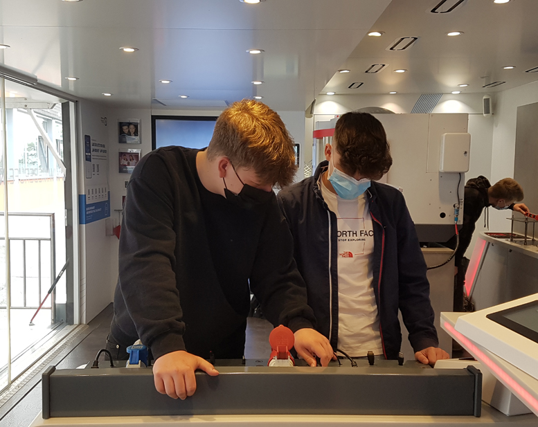 Die Gestaltung des Berufskundeunterrichts umfasst an der Privaten Realschule Schloss Wittgenstein neben dem Angebot des M+E-InfoTrucks, das die Schule zum ersten Mal wahrgenommen hat, noch einige weitere Aspekte. So hatten die Schülerinnen und Schüler der Realschule zuletzt die Gelegenheit bis zu drei Berufsfelderkundungstage bei heimischen Firmen wahrzunehmen. „Der Truck bietet hier einen guten Anknüpfungspunkt an die im Unterricht vermittelten Inhalte sowie an die Dinge, die die Schülerinnen und Schüler in den Unternehmen mitbekommen haben“, sagt Petra Schuppert, die Berufsorientierungslehrerin an der Realschule ist. „Dadurch fällt den Schülerinnen und Schülern die Orientierung bei der Vielzahl von Ausbildungsmöglichkeiten vielleicht einfacher. Schließlich müssen sie sich informieren und entscheiden, wo sie ihr Praktikum vor den Herbstferien absolvieren werden“, sagt sie. „Darüber hinaus ist der M+E-InfoTruck auch ein Highlight im Corona-Alltag“, ergänzt ihr Kollege Denis Ermert.