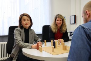 Nan Yang (links) und Christin Henrich, Kinder- und Jugendlichenpsychotherapeutinnen im Gespräch mit einem Elternteil im mvz