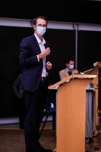 Regierungspräsident Hans-Josef Vogel mahnte eine „zeitgemäße Schule“ an. „Nach 30 Jahren Internet müssen wir jetzt Gas geben“, betonte er. Die Pandemie habe die Defizite im Bildungsbereich schmerzlich deutlich gemacht. Vogel sieht den bc:Olpe als Vorreiter. „Hier wird etwas entwickelt, was andere im Bildungsbereich in Deutschland übernehmen können.“ Das unterstrich auch Prof. Dr. Ingo Witzke, Professor für Mathematikdidaktik und Mitglied des SprecherInnenteams des bc:Olpe, der das Verbundprojekt als systemische Lösung sieht, die Forschung, Entwicklung und Implementierung im Bildungsbereich in einer Modellregion zusammenbringt.