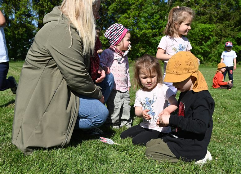 Im Mittelpunkt der Waldtage stand eine bunte Mischung aus Naturerfahrungen, kleinen Forscheraufgaben und freiem Spiel. „Wichtig war uns zudem, den Kindern Raum zur Entwicklung eigener Ideen zu geben“, berichtet Sabrina Stein. „Die vielseitige Gestaltung der Waldwoche, für die sich Gelfa Süß aus unserem KiTa-Team intensiv engagiert hat, führte zu zahlreichen Erkenntnissen zu den Themen Umwelt und Klima. Diese können nun in das tägliche Handeln der Kinder einfließen.“ Der gewohnte KiTa-Alltag kam dabei nicht zu kurz: Durch die Kooperation mit den Schwarzen Schafen Dielfen konnte das Turnen auch während der Waldwoche stattfinden. Die mobile Musikschule und die gemeinsamen Mahlzeiten wurden ebenfalls in den Wald verlagert.