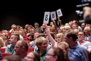 In Zeiten des Fach- und Führungskräftemangels wird es für die Unternehmen immer schwerer, Personal zu finden. Der Recruiting Slam dreht das klassische Bewerbungsgespräch um. Unternehmen und IHK gehen bewusst diesen etwas anderen Weg der Personalrekrutierung. Dieses Mal zeigten neun Personalleiter und Geschäftsführer Mut und präsentierten ihr Unternehmen sowie ihr Ausbildungs- und Berufsangebot in einem siebenminütigen Slam auf der Bühne. Ganz nach dem Motto „Unternehmenserfolg kennt kein Mitleid“, das Moderatorin Dr. Christine Tretow von der IHK Siegen ihnen mit auf den Weg gab, stellten sich die Teilnehmer anschließend dem Urteil einer zehnköpfigen Publikumsjury.