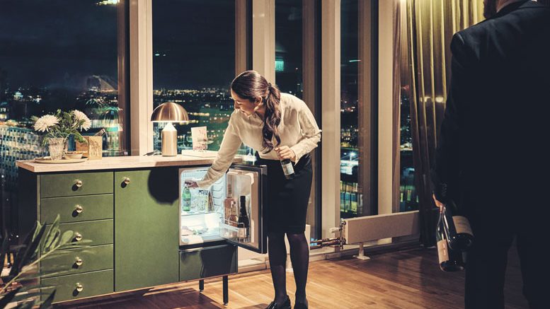 Peter Kjellberg, CMO und Leiter von Other Verticals, erklärt: „Neben einer höheren Leistung zeichnet sich diese Serie durch zahlreiche Branchenneuheiten aus. Die Innenbeleuchtung wurde so gestaltet, dass das gesamte Barsortiment durch die Glastür sichtbar ist; sogar das Fach in der Tür, das eigens für Champagnerflaschen entwickelt wurde. Die Gäste sehen die ansprechende Getränkeauswahl der Minibar, sobald sie das Zimmer betreten. Der Hotelier kann der Minibar eine persönliche Note verleihen und sie zum Mittelpunkt für seine Gäste machen.“