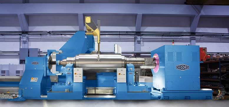 Die erste Maschine für die Aluminiumindustrie wird GEORG 2019 liefern: Für die Walzenschleiferei der neuen Walzstraße von ELVAL in der Nähe von Athen/ Griechenland fertigt GEORG eine ultragrind 50 für die Bearbeitung von Stütz- und Arbeitswalzen. Sie wird Walzen mit einem Gewicht von bis zu 63 t und Durchmessern bis zu 1.600 mm vollautomatisch bearbeiten; die Spitzenweite beträgt 6.500 mm.