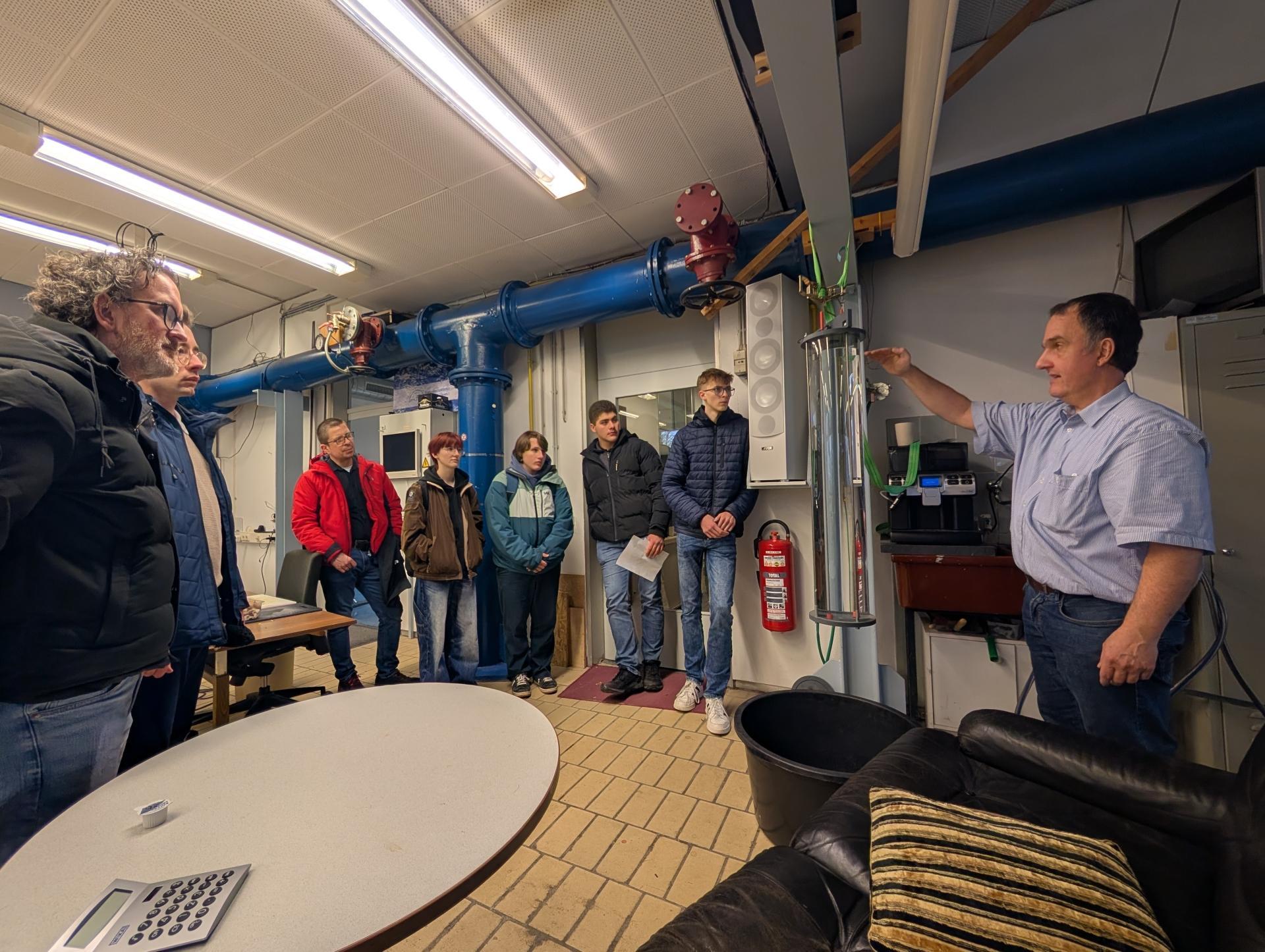 Im Rahmen der Rallye besuchten die MINTees mehrere Stationen aus unterschiedlichen MINT-Disziplinen. Dazu gehörte unter anderem der Windkanal im Fachbereich Maschinenbau, in dem Einblicke in Fragestellungen der Strömungslehre vermittelt wurden. Im Bereich Wasserbau führten die Teilnehmenden ein klassisches Torricelli-Strömungs-Experiment durch und untersuchten den Zusammenhang zwischen Wasserspiegelhöhe und Ausflussgeschwindigkeit.