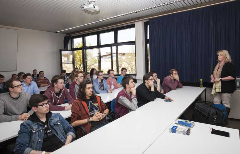 Alexandra Röder (rechts) von der Zentralen Studienberatung gab einen Einblick in das Studienangebot der Universität Siegen, und zwar mit dem Schwerpunkt MINT-Fächer.