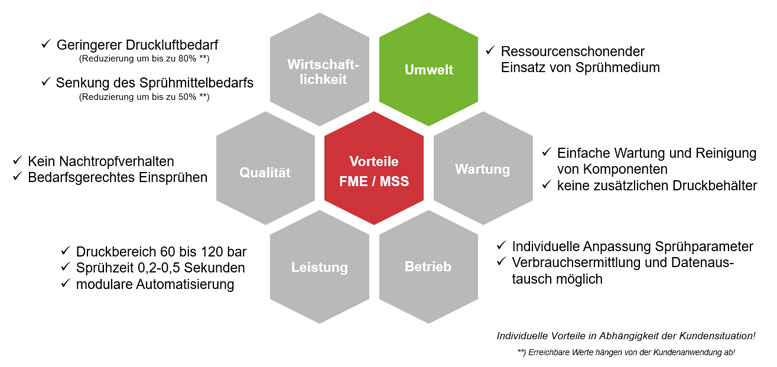 Das neue System ermöglicht entsprechend der jeweiligen modularen Ausbaustufe auch die Integration der  Verbrauchswerterfassung sowie die Steuerung gemäß modellbezogenen Prozessparametern. Eine Verbesserung ist außerdem, dass die Pumpstation mit angegliedertem drucklosen Vorratsbehältnis hier kundenspezifisch angeordnet werden kann, um das Sprühmittel mittels Medienleitung zur Formmaschine zu befördern. Durch die reduzierte Anzahl an Bauteilen und einfachere Zugänglichkeit verbessert es zusätzlich die Wartungsfreundlichkeit. Mögliche Ausbaustufen liegen in der automatisierten Nachfüllung des Vorratsbehälters, der Einbindung in das Anlagensteuerungssystem oder aber zur Auswertung der Datenübergabe.