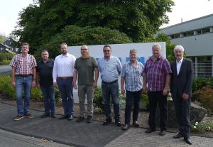 Im Bild (v.l.n.r.): Rüdiger Habicht (40-jähriges Jubiläum), Rüdiger Diehl (40-jähriges Jubiläum), Dr. Petrico von Schweinichen (Geschäftsführer), Kai Krause (25-jähriges Jubiläum), Frank Schmidt (40-jähriges Jubiläum), Theo Bender (40-jähriges Jubiläum), Ernst-Heinrich Amos (40-jähriges Jubiläum) und Klaus Hägele (GF). Im Bild fehlt Manfred Stöcker (40-jähriges Jubiläum).