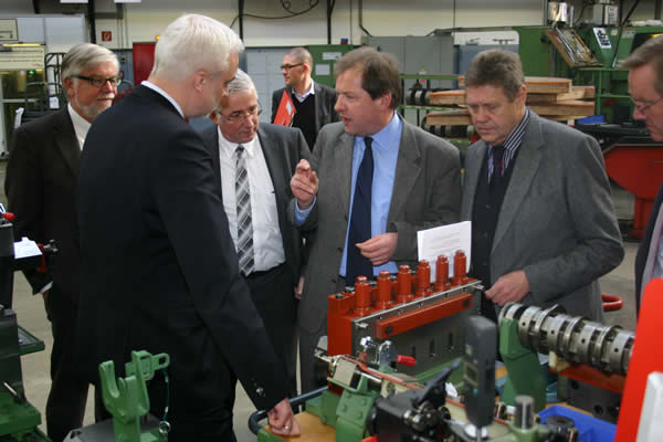 Nach den Gesprächen baten die beiden EJOT-Geschäftsführer zu einem Betriebsrundgang. Der Wirtschaftsminister hatte dabei die Gelegenheit, einen Blick in die moderne Schraubenfertigung im Werk Astenbergstraße zu werfen. „Mir war bislang gar nicht bewusst, dass der Wagen, mit dem ich hierher gefahren bin, auch von ihren Produkten zusammengehalten wird“, so Garrelt Duin, der anschließend sichtlich beeindruckt wieder nach Düsseldorf aufbrach.