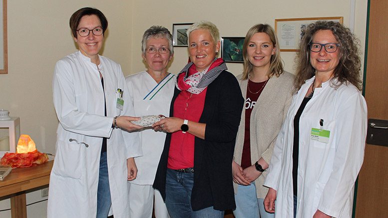 Ein kleiner Geschenkbeutel sorgte für große Freude auf der Palliativstation des Diakonie Klinikums Jung-Stilling: Die Erlöse der Weihnachtstombola hat das Freudenberger Unternehmen Albrecht Bäumer der Fachabteilung des Siegener Krankenhauses gespendet. 2650 Euro konnten Betriebsratsmitglied Sonja Giebeler und Sarah Ising, Mitglied der Jugendvertretung, dem Team der Palliativstation überreichen. „Die Erlöse aus dem Losverkauf kommen seit einigen Jahren einem gemeinnützigen Zweck in der Region zugute“, erklärte Sonja Giebeler. „Ein Angehöriger einer Mitarbeiterin wurde palliativmedizinisch behandelt. Das hat den Anstoß dazu gegeben, dass wir in diesem Jahr die Palliativstation im Jung-Stilling unterstützen.“