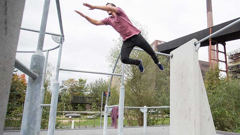 Anfang Oktober 2017 wurde die neue Parkour-Anlage auf dem Gelände der Kokerei Zollverein in Essen eröffnet. Mit 600 m² ist sie die größte Parkour-Anlage im Ruhrgebiet und bei fortgeschrittenen Traceuren, so werden die Parkour-Sportler genannt, schon ein beliebter Treffpunkt für ihr Training und Zusammensein. Aber auch ungeübten ParkourSportlern steht die öffentlich zugängliche Anlage zur Verfügung. Die BSW GmbH aus Bad Berleburg lieferte den fugenlosen Fallschutzboden playfix, der im Falle eines „Falls“ einen sicheren Untergrund bietet.