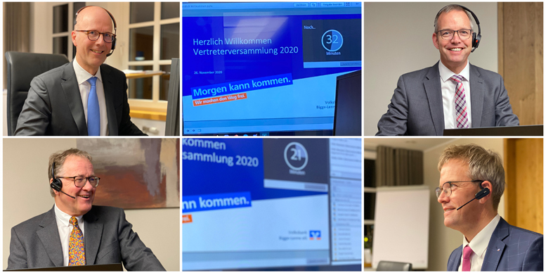 Der Rückblick auf das „zufriedenstellende Geschäftsjahr 2019“ und der Ausblick auf die nähere Zukunft standen angesichts der sich abzeichnenden Herausforderungen für Geldinstitute während der digitalen Vertreterversammlung im Fokus. Auch wenn das Veranstaltungsformat neu und ungewohnt war, stand die Versammlung wie gewohnt unter der Leitung von Aufsichtsratvorsitzendem Christian Berken.