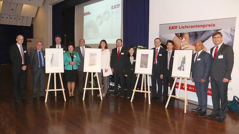 Einen roten Teppich gab es zwar nicht, aber die feierliche Verleihung des Lieferantenpreises 2016 der EJOT Gruppe hatte dennoch einen Hauch von Hollywood. Unter dem Applaus zahlreicher Gäste aus dem In- und Ausland wurden im festlich geschmückten Saal des Bürgerhauses Bad Berleburg die Preise an die Firmen Friedr. Brüninghaus & Söhne GmbH & Co. KG aus Altena, Hapema GmbH aus Engelsbrand , Weber Schraubautomaten GmbH aus Wolfratshausen sowie die Essence Method Refine Co. Ltd. aus Taiwan verliehen.