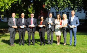 Das Südwestfalen-Forum als Treffpunkt (v.l.n.r.): Hubertus Winterberg (Geschäftsführer Südwestfalen Agentur), Dr. Karl Schneider (Landrat Hochsauerlandkreis), Frank Beckehoff (Landrat Kreis Olpe), Eva Irrgang (Landrätin Kreis Soest), Thomas Gemke (Landrat Märkischer Kreis), Marie Ting (Leiterin Regionalmarketing Südwestfalen, Südwestfalen Agentur), Dr. Stephanie Arens (Leiterin REGIONALE 2025, Südwestfalen Agentur), Maik Rosenberg (Vorsitzender, Verein „Wirtschaft für Südwestfalen“) (Foto: Stephan Müller / Südwestfalen Agentur)
