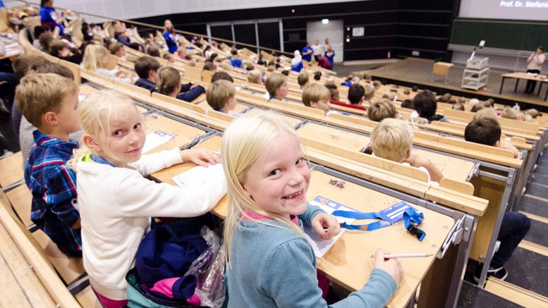 Einmal im Rennwagen sitzen, das ist der Traum etlicher junger Menschen. Mit einem Bausatz ein eigenes Spielzeugauto bauen, lädt zu Wettrennen über kurze Distanzen ein. Mit einem 3D-Drucker Dinge gestalten, entpuppt sich als faszinierend. Mit einer Wissenschaftlerin eine gläserne Rose oder einen zerbrechlichen Fahrradschlauch zerschlagen – das ist spannend. All diese Erlebnisse hatten Kinder und Eltern im Rahmen der Kinderuni-Vorlesung zum 50-Jährigen Bestehen der Universität Siegen am Campus Adolf-Reichwein-Straße. Mitte Mai öffnete das Audimax die Pforten. Das Department Maschinenbau und das Haus der Wissenschaft hatten zum Erlebnisnachmittag „Maschinenbau für junge Menschen“ eingeladen. Rund 100 Gäste folgten den Kurzvorlesungen von Dr. Carolin Zinn und Prof. Dr. Peter Burggräf. Sie probierten im Foyer den Sitzkomfort des Rennwagens der Speeding Scientists aus, arbeiteten am 3-D-Drucker, bestaunte stattliche Autofedern, schauten sich Stahlstrukturen unter dem Mikroskop an und bastelten aus Holz, Pappe und Gummis kleine Rennwagen. Für Getränke und Waffeln sorgte die Fachschaft Maschinenbau.