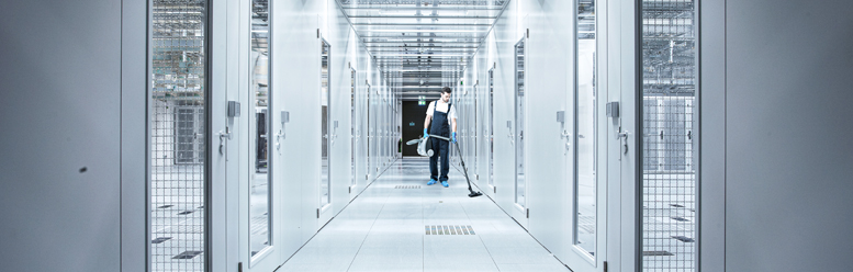 Mit iQdata bietet der erfahrene Spezialist SCHÄFER IT-Systems für IT-Infrastrukturen ein ganzheitliches Produktspektrum für Rechenzentren aus einer Hand. Dazu gehören etablierte Wartungs- und Service-Dienstleistungen, die nun mit „RZ-Reinigung“, d.h. der physischen Pflege von IT-Infrastruktur in Rechenzentren, komplettiert wird. Angeboten werden vier Reinigungspakete mit unterschiedlichen Leistungsspektren: „RZ-Reinigung“ beginnt bei der Baureinigung und geht mit der Bauschlussreinigung in die regelmäßige Unterhaltungsreinigung von IT-Anlagen im laufenden Betrieb über. Gereinigt werden etwa Lüfter, Platinen, Verkabelungen, Trassen, Klimaspangen und vieles mehr. Zur Qualitätssicherung wird jede Reinigung mit einem Reinigungsprotokoll abgeschlossen. Die geltenden Standards und Normen, wie DIN EN ISO Norm 14644-1 Klasse 7-8 für Großrechenzentren und Data Center, werden erfüllt.