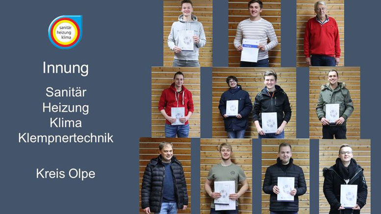 Aus der Innung für Sanitär – Heizung – Klima und Klempnertechnik für den Kreis Olpe haben die Gesellenprüfung (Wintergesellenprüfung 2020/2021) bestanden: