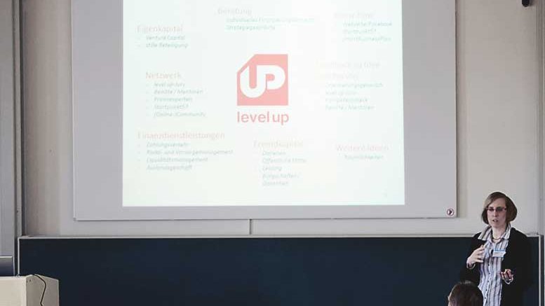 Einen neuen Blickwinkel auf das Thema Gründung bot der Workshop „Gründung gestern und heute“. Unter der Marke „level up“ fasst die Sparkasse Siegen ihre Aktivitäten und Angebote zusammen, die sich an Existenzgründer und junge Unternehmer richten. „Knapp ein Drittel der Selbstständigen sind nach der Gründung vom Markt verschwunden. Wenn ein Gründer scheitert, so liegt das in der Regel an fehlender Fundierung des Konzepts. Es stellt sich hier die Frage: wie können wir frühzeitig in den Bereichen Konzept und Person Einfluss nehmen?“, erklärte Gesine Westhäuser, Vorstandsmitglied der Initiative „Startpunkt57“, vor Studierenden, DoktorandInnen und jungen GründerInnen. Statt erst Gespräche zu führen, wenn es um konkrete Finanzierungsprobleme geht, wolle man auch bei vagen Vorstellungen beratend zur Seite stehen. „Schon die eventuelle Idee sich selbständig zu machen, gibt Anlass zur Beratung“, sagte Westhäuser.