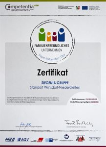 Die Vereinbarkeit von Familie und Beruf wird bei SIEGENIA großgeschrieben. Von flexiblen Arbeitszeiten über Teilzeitausbildungen bis zur Betreuung von Mitarbeiterkindern in der betriebseigenen KITA stellt das Unternehmen seinen Mitarbeitenden hierzu zahlreiche Möglichkeiten zur Verfügung. Jetzt wurde das Unternehmen vom Kompetenzzentrum Frau & Beruf Siegen-Wittgenstein/Olpe für seine Familienfreundlichkeit ausgezeichnet.