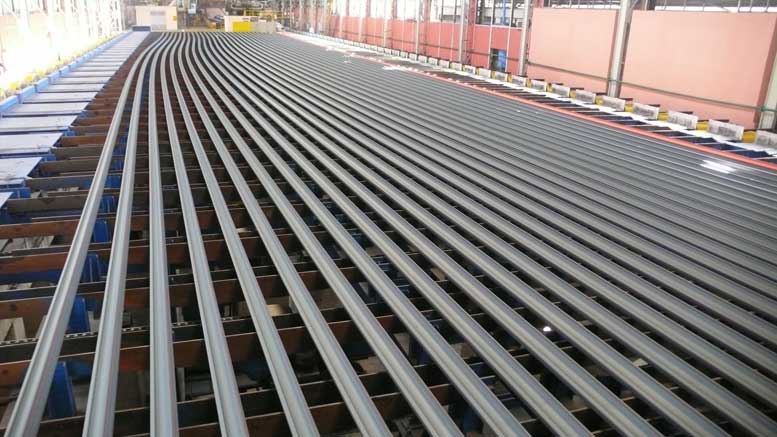 Die Schienenadjustage wird für die Bearbeitung von langen und kurzen Schienen ausgelegt und wird über Prüfeinrichtungen, Trenn- und Bohrmaschinen sowie „“gap presses“ verfügen. Für die Bear­beitung der Profile wird eine separate Adjustagelinie geliefert.