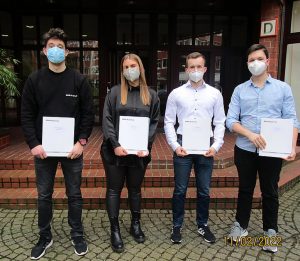 Die Absolventen am Standort Hilchenbach mit der Note „sehr gut“. Im Bild (v.l.): Niklas-Leon Meding, Miriam Flemming, Patrick Klein und Philipp Klinke. Fehlend: Felix Henrichs.