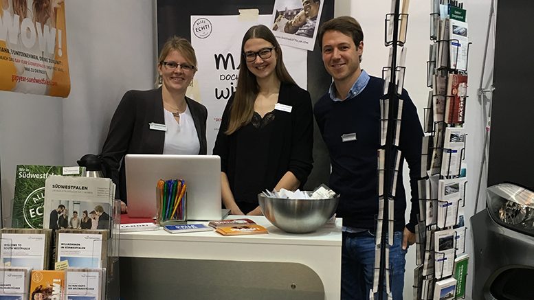 Auf einem Dutzend Karrieremessen hat die Südwestfalen Agentur 2018 mit einem Gemeinschaftsstand auf die spannenden Jobperspektiven in Südwestfalen aufmerksam gemacht. Das Werben um potenzielle Fach- und Führungskräfte, Studierende, Absolventen und Absolventinnen sowie Young Professionals ist Teil der „Südwestfalen – Alles echt!“- Kampagne, die inzwischen von 320 Unternehmen unterstützt wird.