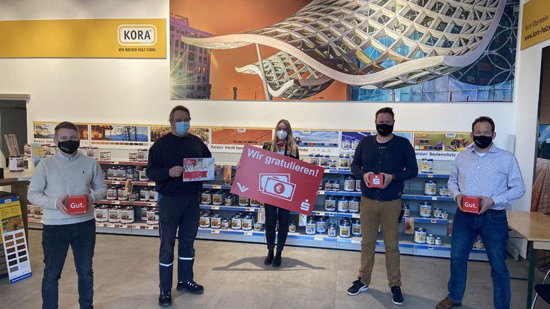 Svenja Wacker, bei der Sparkasse Wittgenstein Ansprechpartnerin für die Spargemeinschaften, übergab jetzt den Gutschein, der in allen Wittgensteiner Rewemärkten eingelöst werden kann, an den Sparvorstand. Sobald es die Rahmenbedingungen zulassen, soll damit eine große Sparclubfete gemacht werden, bei der das Thema Holzschutz sicher nur eine untergeordnete Rolle spielen wird.