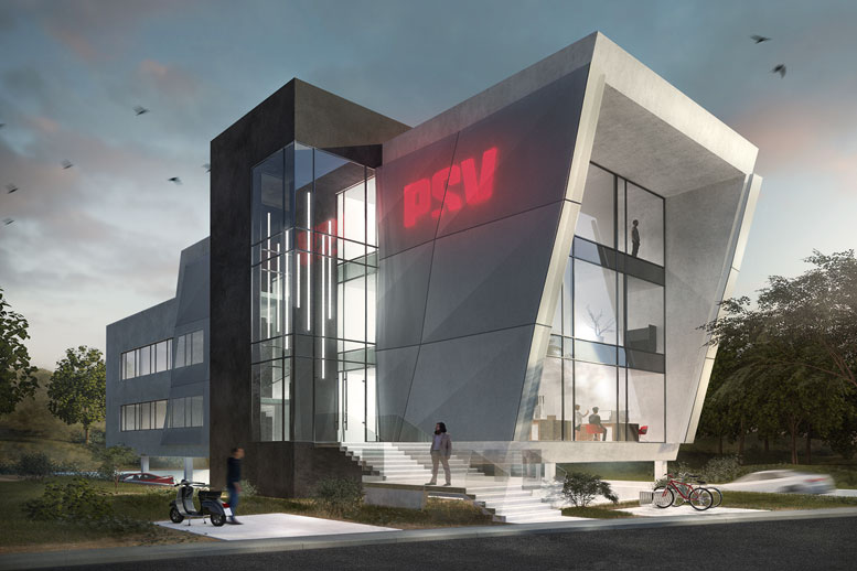 Den Vorwärtsdrang von PSV hat Architekt Dietmar Winkel mit markanten Konturen auf das neue Firmengebäude übertragen. Das Prinzip von PSV, nach vorne zu denken und Impulse für den Fortschritt zu geben, wirkt so auch über die Architektur. Damit werden auf der Martinshardt, wo sich schon einige junge Unternehmen aus verschiedenen Branchen angesiedelt haben, neue Akzente gesetzt. Im nächsten Jahr startet dann die B2B-Marketingagentur PSV am neuen Standort durch, um mit der eigenen Transformation neue Wege für den digitalen Wandel im Mittelstand aufzuzeigen.