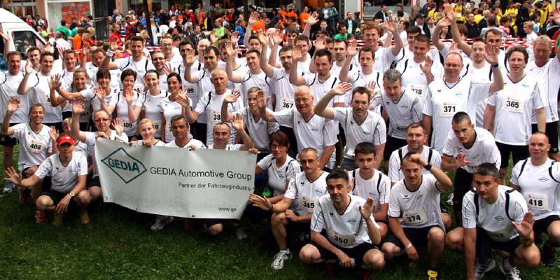Auch beim 10. Olper Teamcup am Freitag, 21.06.2013 stellte die Attendorner Unternehmensgruppe GEDIA wieder die meisten Läufer beim Hauptlauf. Rund 90 Mitarbeiter waren in unterschiedlichen Teams für den Start angemeldet und absolvierten drei Runden über 5,2 km um die Stadtmauer. In der Männerwertung gelang es dem Team „GEDIA (Auto)mobil“ das Siegertreppchen auf dem dritten Platz zu besteigen. Die Läufer erzielten die Plätze 8-13 im Zieleinlauf.