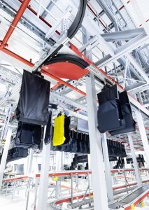 Mit dem Taschensorter SSI Carrier bietet SSI Schäfer eine äußerst kompakte und vielseitige Hängefördertechnik für die parallele Abwicklung unterschiedlicher Vertriebskanäle, besonders geeignet für den E-Commerce unter anderem durch das effektive Retourenhandling.