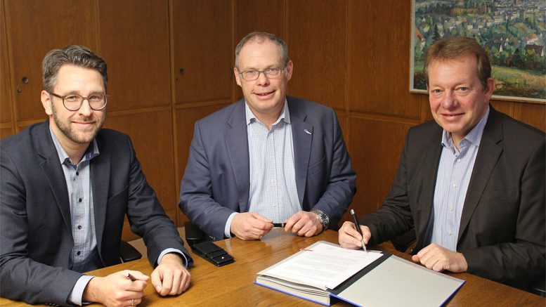 Verträge unterzeichnet (von links): Stadtbaurat Henrik Schumann, Uni-Kanzler Ulf Richter und Bürgermeister Steffen Mues.