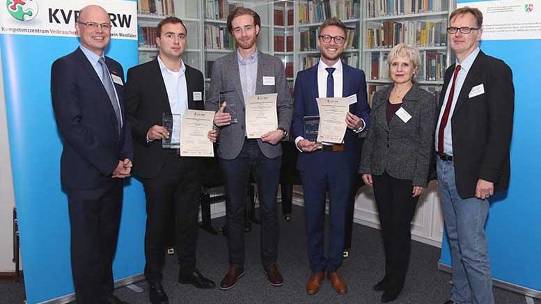 Doppelter Erfolg für Stefan Hanschke von der Uni Siegen. Für seine Bachelorarbeit im Fach Wirtschaftsinformatik hatte der Student bereits im vergangenen Jahr die bestmögliche Note 1,0 bekommen. Jetzt durfte sich der 24jährige Olper noch einmal freuen: Zusammen mit zwei weiteren Nachwuchswissenschaftlern von den Universitäten Münster und Bielefeld ist er in Düsseldorf mit dem „Nachwuchsförderpreis Verbraucherforschung 2017“ ausgezeichnet worden. Der Preis wird jährlich im Rahmen des Projekts „Kompetenzzentrum Verbraucherforschung NRW“ (KVF NRW) ausgeschrieben. Er prämiert wissenschaftlich hervorragende Abschlussarbeiten, die sich mit Verbraucherthemen beschäftigen.