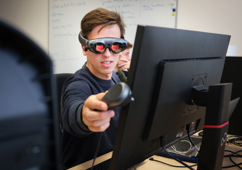 Gunnar Rosendahl (Siegener Student) und Tanner Tuttle (Psychologie-Student aus Rotterdam) sind zwei der insgesamt zehn Studierenden, die an diesem Spezialkurs teilnehmen. Der Siegener Rosendahl findet es besonders spannend, in einem internationalen Team zu arbeiten. „Der Kurs kombiniert modernste Hardware mit Lösungsansätzen für anspruchsvolle medizinische Probleme mithilfe von AR/VR, und das alles in Siegen“, schwärmt der Rotterdamer Tuttle. „Ich bin überrascht, denn viele größere Städte setzen sich für einen solchen Ansatz ein, aber die Universität Siegen macht es tatsächlich.“ Prof. Brück ergänzt: „Virtuelle Technologie-Inhalte fehlen bisher in Rotterdam. Die Rotterdamer empfinden den Siegener Kurs als sehr gewinnbringend, weil diese Inhalte ihr Studium hervorragend ergänzen.“ Bereits im November 2019 hatte die Universität Siegen einen Kooperationsvertrag mit dem Erasmus Medical Center im Rahmen des Modellvorhabens „Medizin neu denken“ unterzeichnet. Dieser ermöglicht spezielle Angebote in der Lehre, von der Studierende beider Universitäten profitieren.