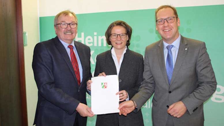 Kurz vor Weihnachten hatte NRW-Heimatministerin Ina Scharrenbach für die Vertreter der Südwestfalen Agentur GmbH eine besondere Gabe: Sie überreichte dem Vorsitzendes des Aufsichtsrat Landrat Frank Beckehoff und Geschäftsführer Hubertus Winterberg nun in Düsseldorf einen ersten Förderbescheid in Höhe von 210.000 Euro. Damit ist der offizielle Startschuss zum Aufbau des REGIONALE-Managements in der Südwestfalen Agentur GmbH in Olpe gefallen.
