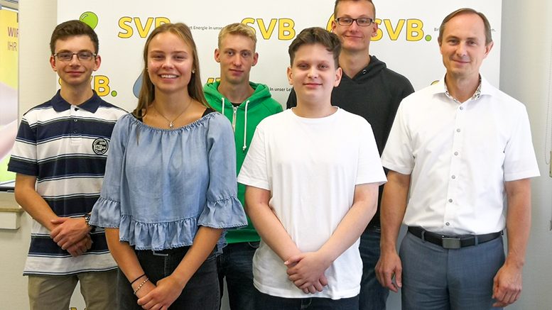 Personalleiter Torsten Keil (rechts) begrüßt die neuen Auszubildenden Falko Frank, Lea Wirth, Vincent Schröder, Jan Klomfass und Marlon Schäfer (von links) bei der SVB.