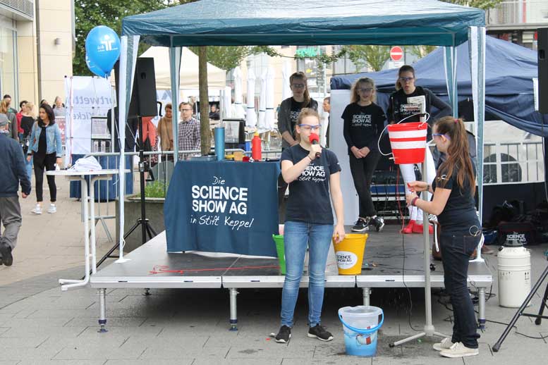 Die Schülerinnen und Schüler der Science Show AG des Gymnasiums Stift Keppel zeigten in der Siegener Innenstadt eindrucksvolle Experimente.