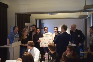 Ab 15 Uhr rauchten die Köpfe der Teilnehmer, die sich in ihren interdisziplinären Teams einzelnen Fragestellungen der digitalen Transformation widmeten und hochmotiviert die ganze Nacht für ihre Ergebnisse durcharbeiteten. Für Rückzugsmöglichkeiten bei kreativen Brainstormings, Verpflegung und benötigte Materialien wurde gesorgt. In zehnminütigen Kurzpräsentationen erläuterten die Teilnehmer am Samstag Mittag ihre Projekt-Ideen, die dann von einer Jury ausgewertet und prämiert wurden.