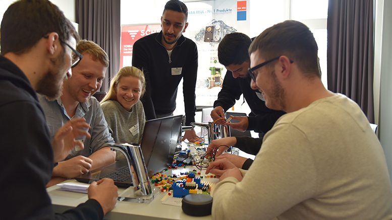 kwasserinstallation ausspült. Die beiden Aspekte Hygiene und Wassersparen zu vereinen und mittels Sensoren oder Applikationen ein nachhaltiges System zu entwickeln, verlangte den Teilnehmern hohe Konzentration ab. So waren kreativ dynamisches Konzipieren, Erarbeiten und Entwickeln in StartUp-Manier zu beobachten. Sowohl eine Sensibilisierung für die Themen Trinkwasser und Hygiene als auch die Schärfung der Blicke auf wirtschaftlichen und ressourcenschonenden Betrieb von Gebäuden, waren Ziele, die dem Olper Familienunternehmen am Herzen lagen.